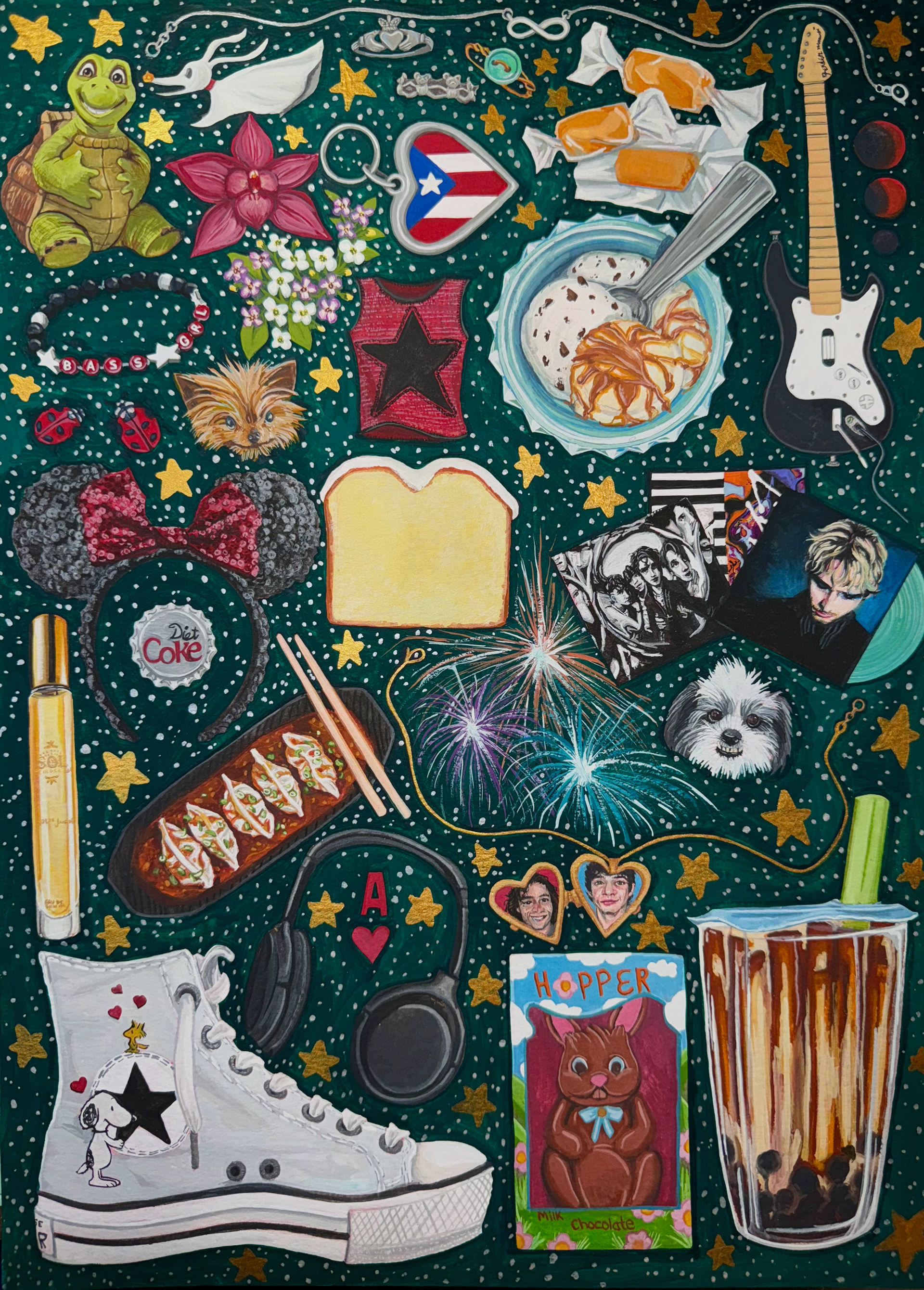 All paintings are created using gouache